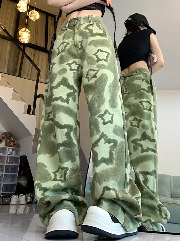 Pantalones vaqueros boyfriend de camuflaje verde para trabajo