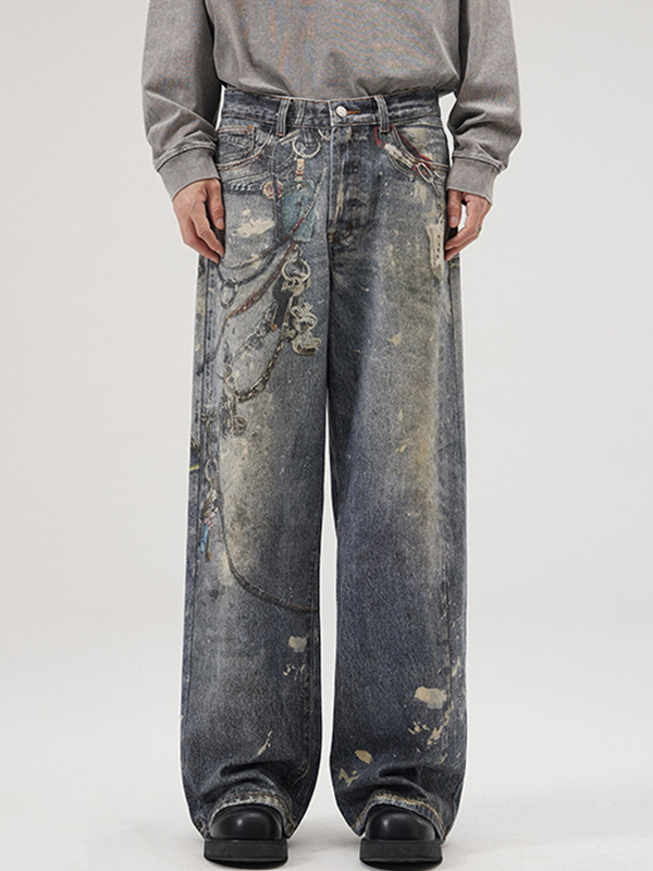 Pantalones vaqueros holgados de pierna ancha y pierna recta de marca de moda