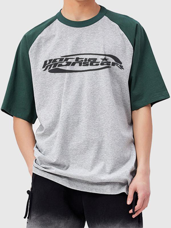 Camiseta de manga corta con estampado de manga raglán para hombre