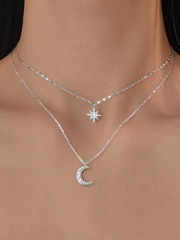 Collar con colgante de luna creciente y estrella de doble capa