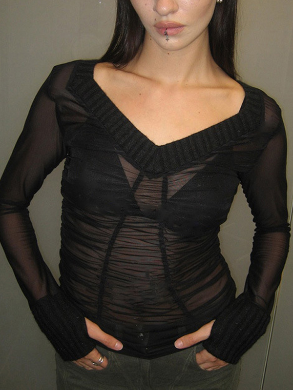 Camiseta de manga larga con escote cuadrado y ombligo al descubierto