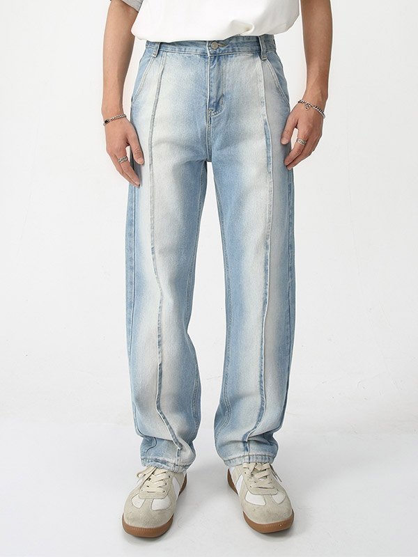 Jeans rectos de mezclilla desgastada con costuras para hombre