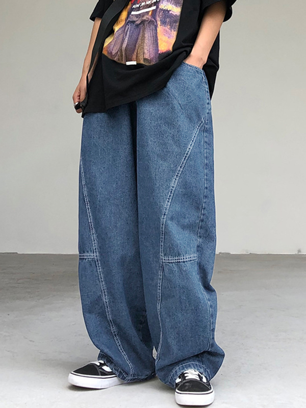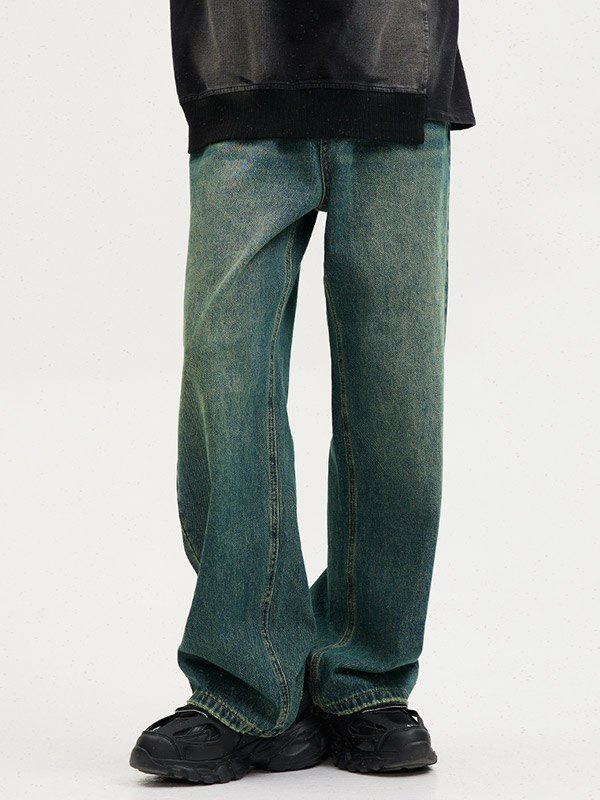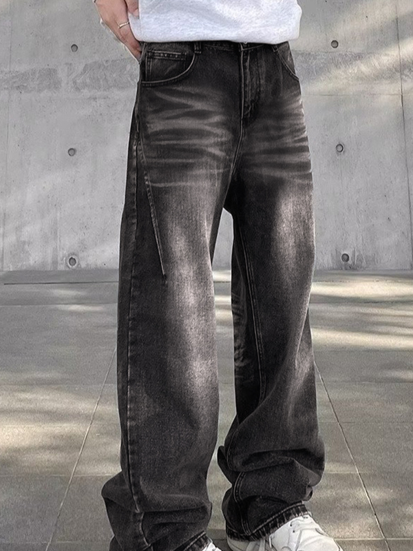 Jeans sueltos de mezclilla desgastada vintage para hombre