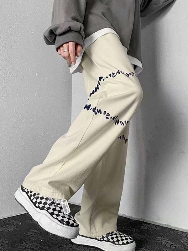 Pantalones de pierna recta con cremallera lateral rasgada y parche en contraste para hombre