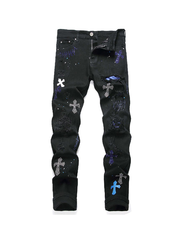 Vaqueros holgados con raglán y emblema de cruz con diamantes de imitación para hombre
