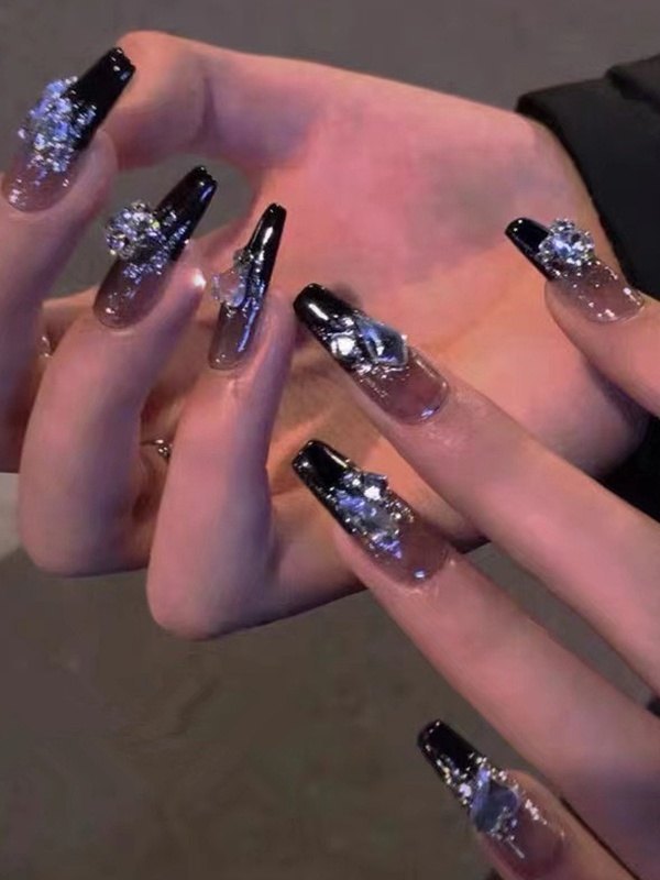 24 piezas de patrón de lazo de diamantes de imitación prensa en las uñas