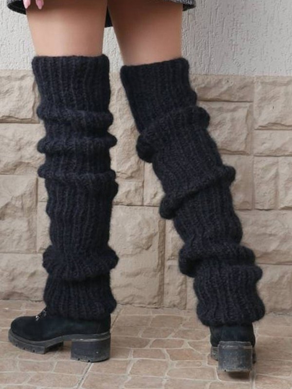 Calentador de piernas Y2K desgastado de color liso