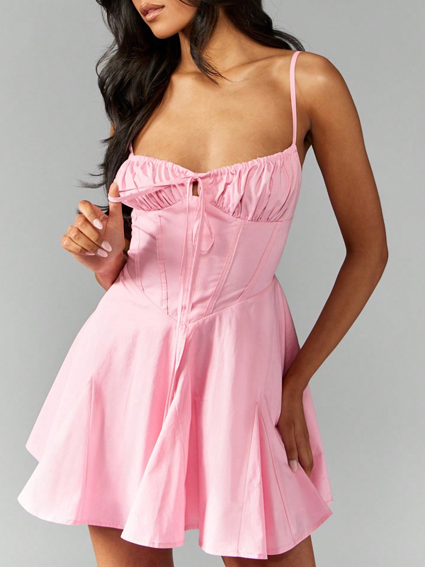 Minivestidos con pliegues y lazo de estilo dulce