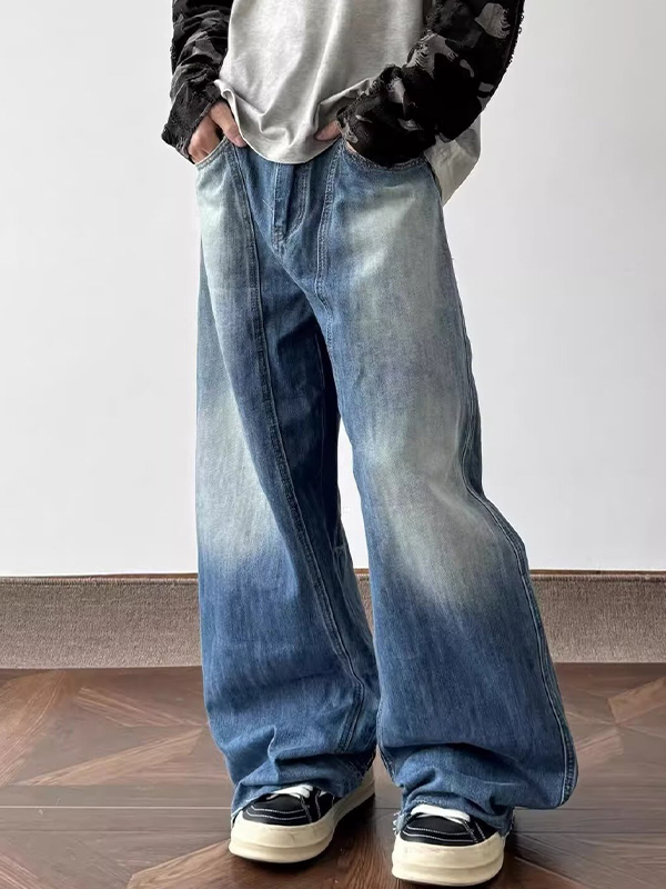 Jeans sueltos de hombre de mezclilla marrón desteñido