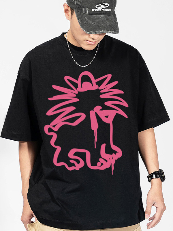 Camiseta extragrande de manga corta con estampado callejero para hombre