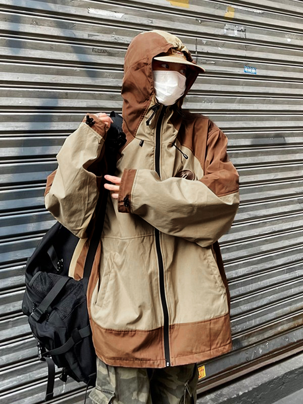 Chaqueta extragrande con capucha y cierre de bloque de color bordado