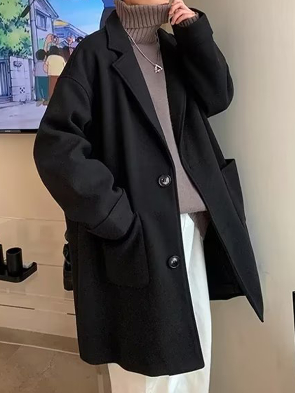 Abrigo de lana largo con cuello de solapa liso para hombre