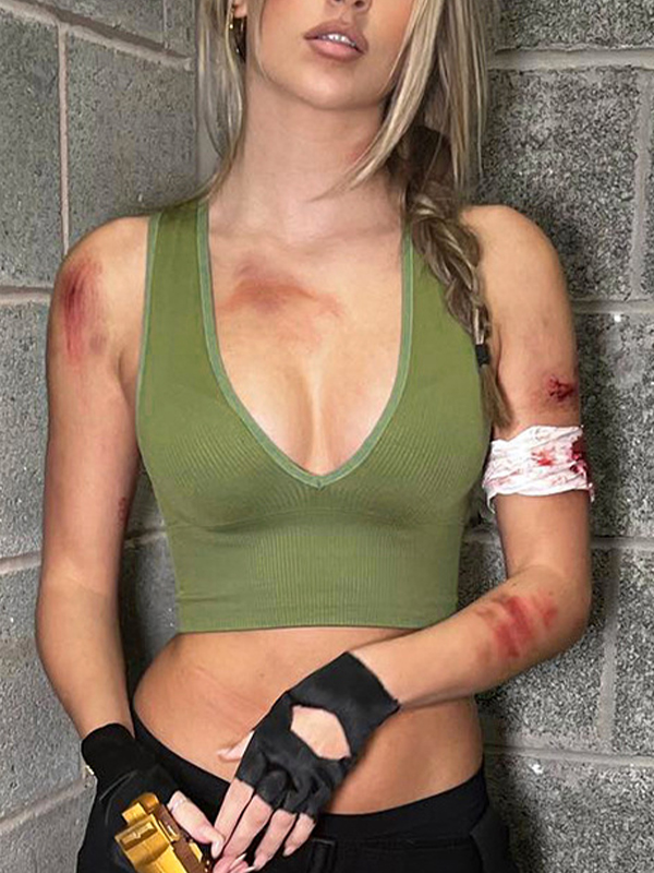 Sé el primero en valorar “Camiseta sin mangas ajustada con escote en V profundo”