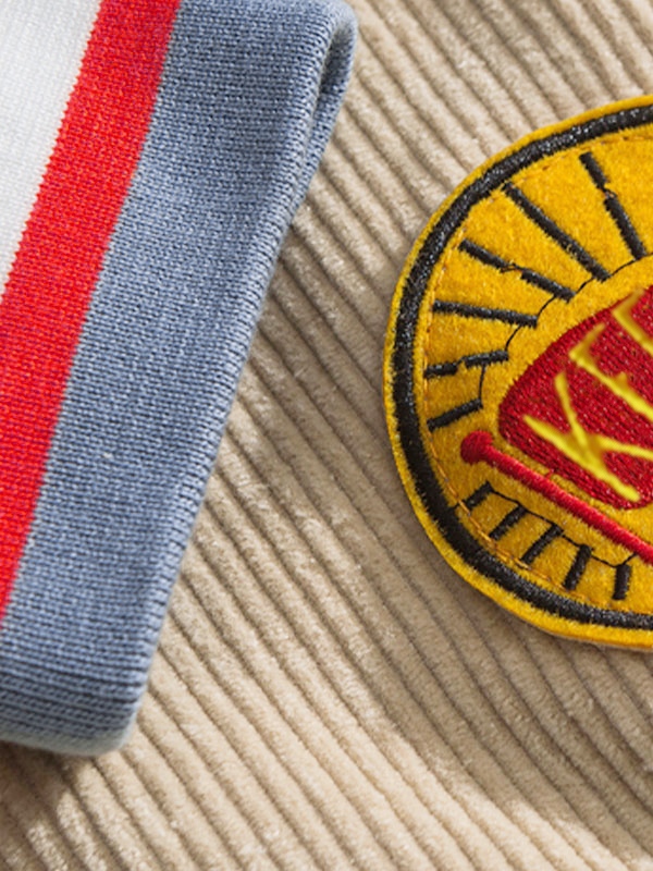 Chaqueta con parche de insignia de pana para hombre