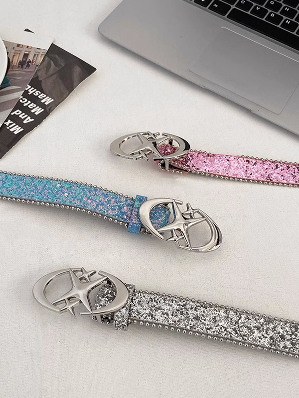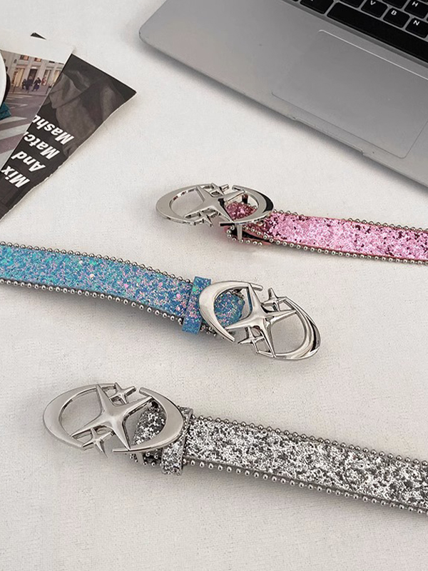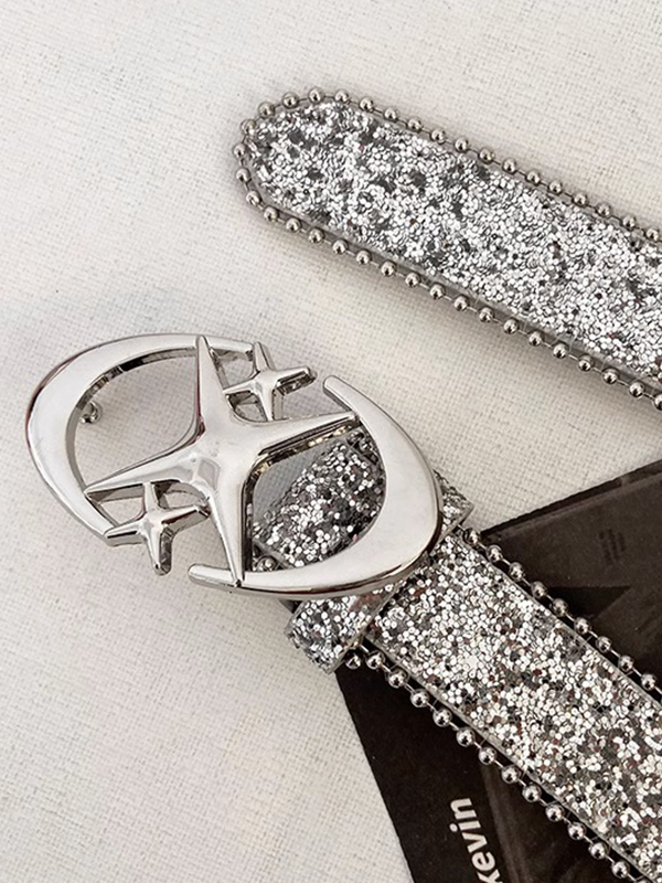 Cinturón con hebilla de metal con lentejuelas brillantes Y2K