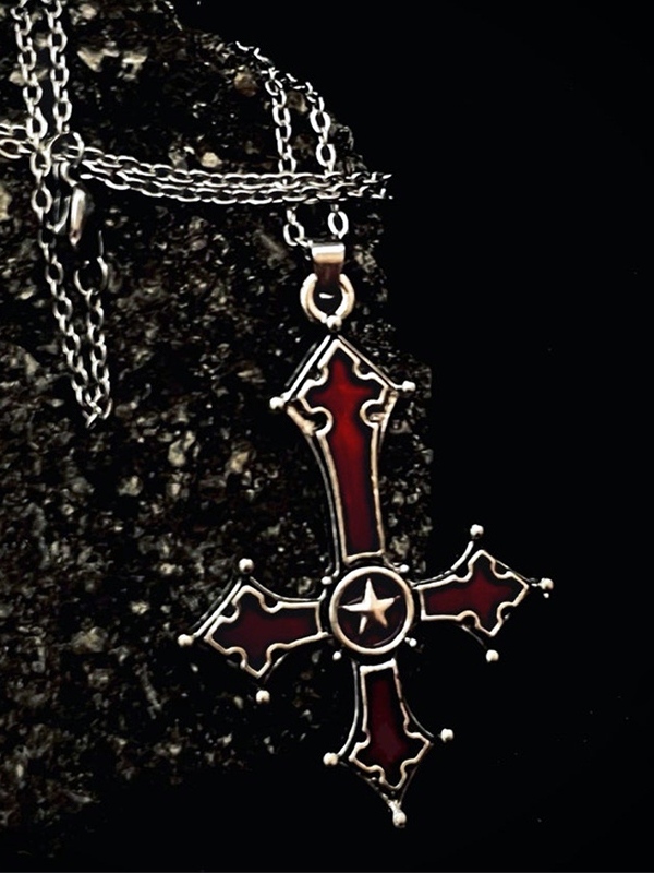 Sé el primero en valorar “Collar con colgante de cruz invertida rojo sangre”