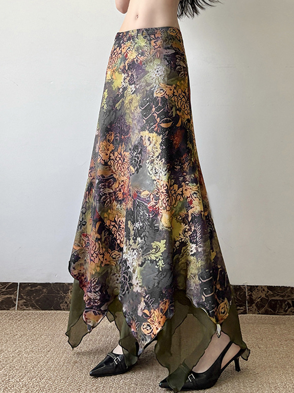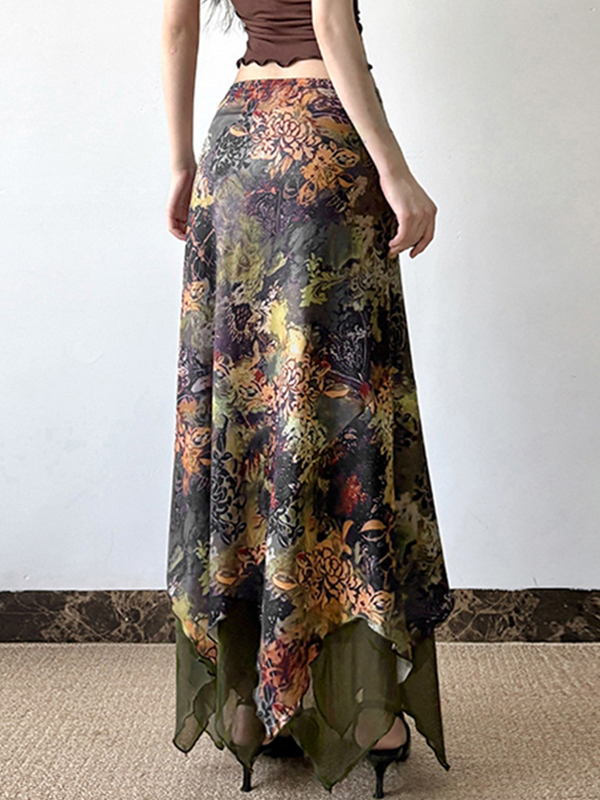 Falda larga con estampado floral botánico Mori