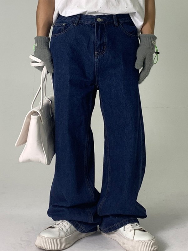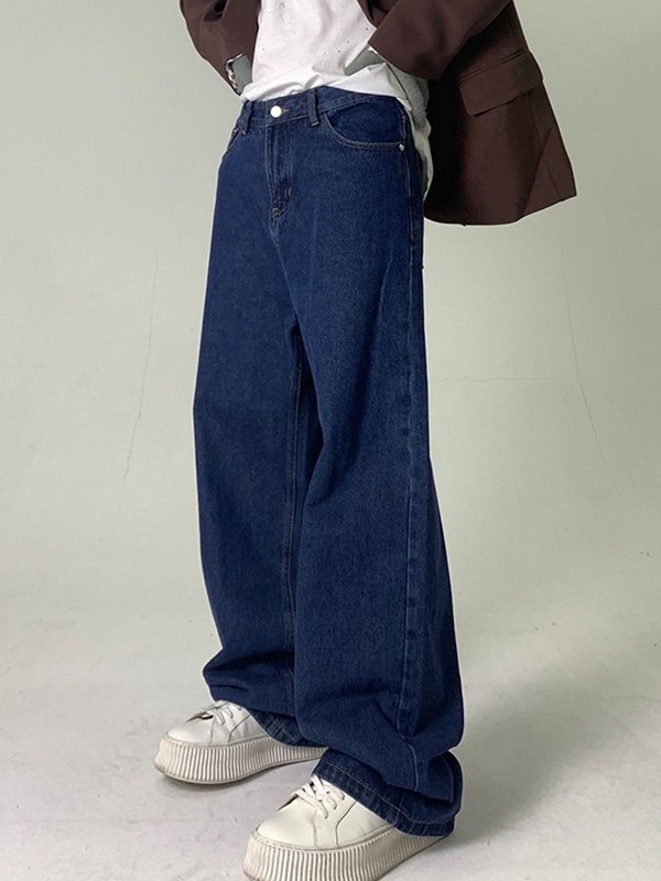 Estilo: Informal/Callejero/Grunge/Hip Pop/Punk/Vintage/Básicos Contenido de la tela: Mezcla de algodón Tipo de calce: Calce relajado Descripción: Estos jeans lavados tienen forma de silueta relajada, con diseño de bolsillos funcionales y cierre de botón con cremallera.