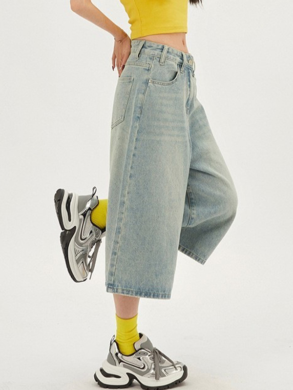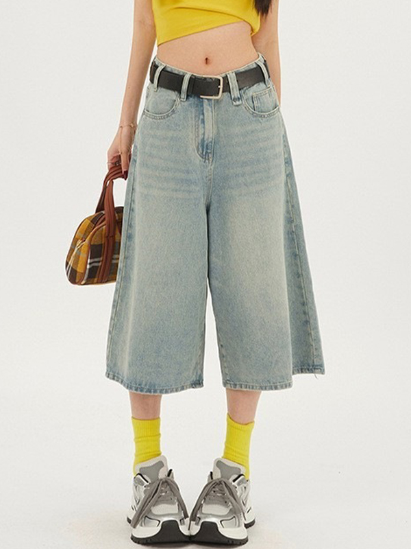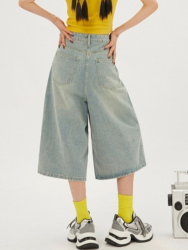 Pantalones cortos de mezclilla versátiles de pierna ancha