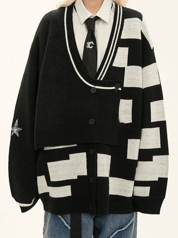 Suéteres oversize con estampado de cuadros