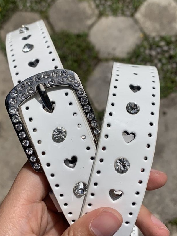 Cinturón con hebilla de diamantes de imitación brillante con recorte de corazón Y2K
