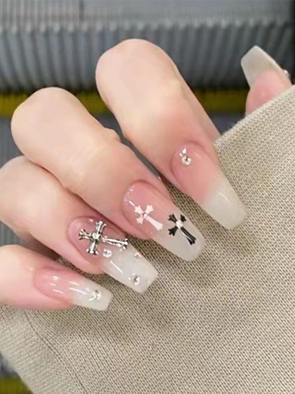 24 piezas de prensa de patrón cruzado en las uñas.