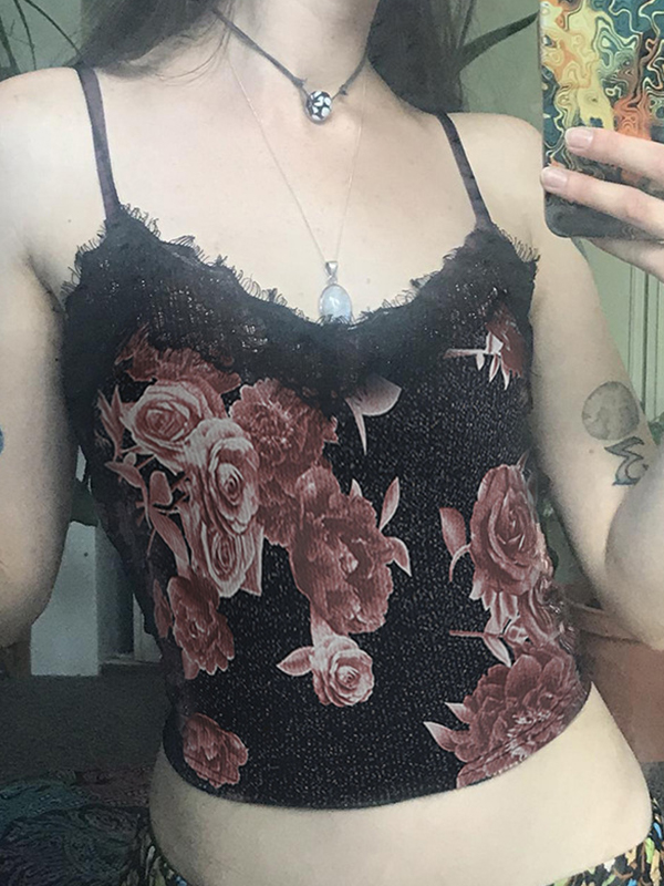 Top tipo camisola con busto de patchwork y estampado de leopardo y encaje