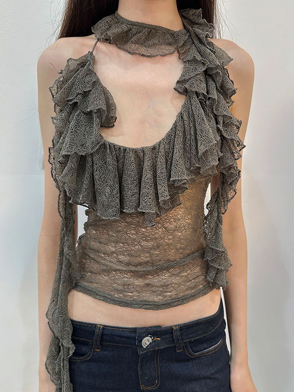 Chaleco halter de lunares con tirantes y espalda descubierta