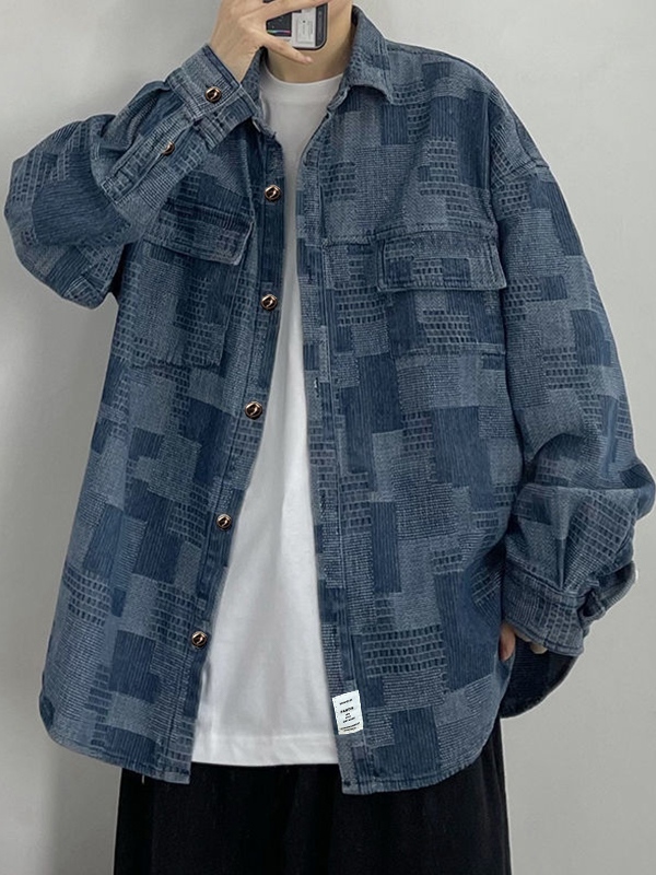 Camisa de manga larga de pana con bolsillo simple para hombre