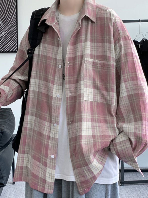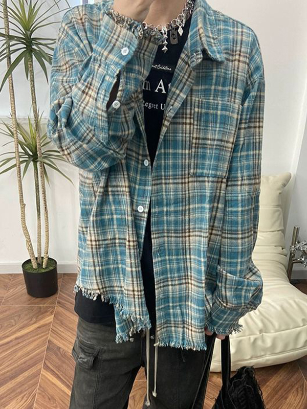 Blusa de manga larga a cuadros desgastada vintage para hombre