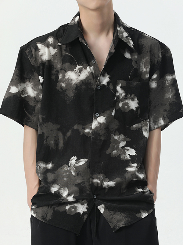 Camisa con botones y estampado de grafiti de dibujos animados para hombre