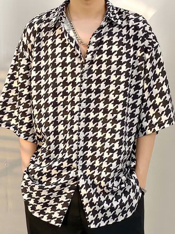 Blusa de manga larga con diseño de borlas a cuadros vintage para hombre