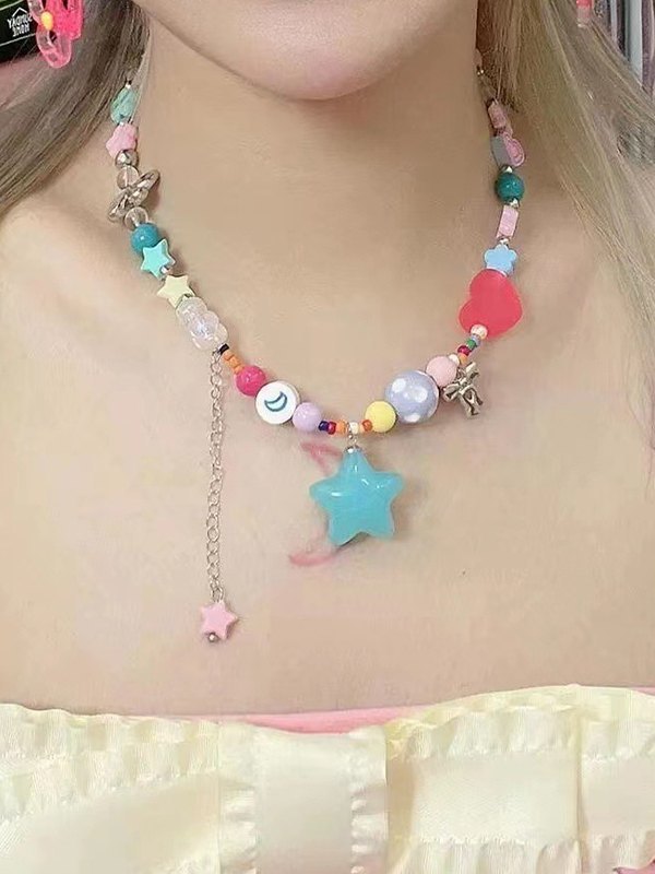 Collar de perlas de imitación de perlas de piedra de colores boho