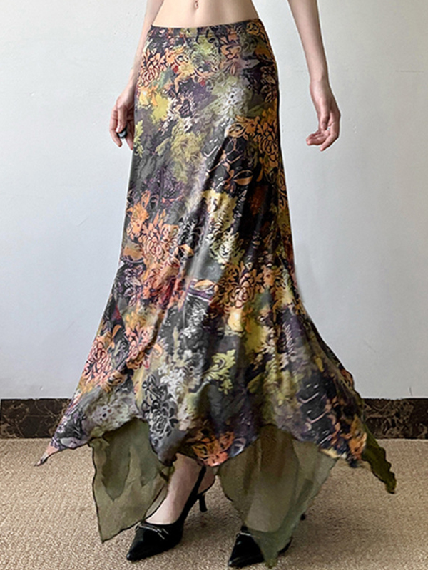 Falda larga con estampado floral botánico Mori