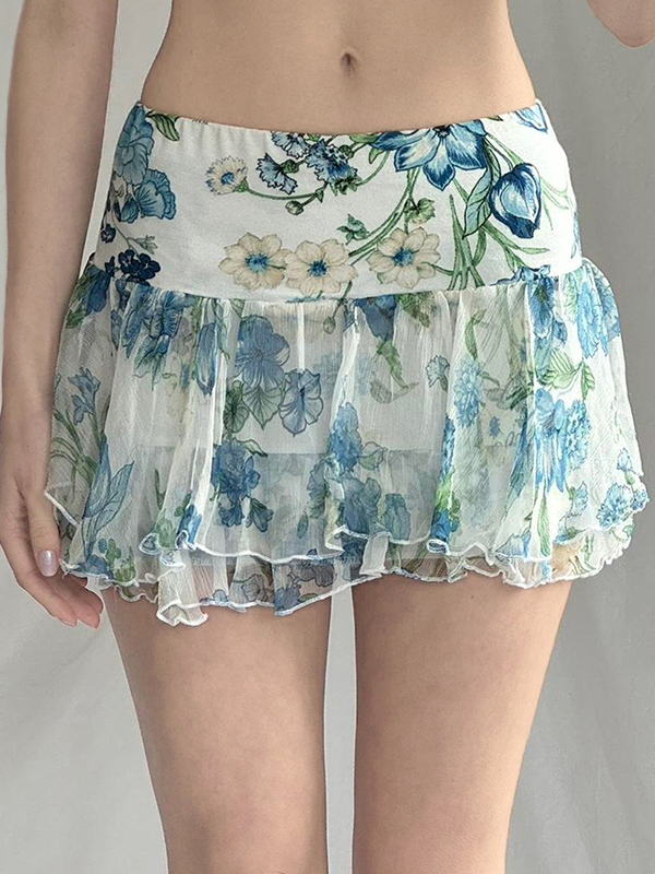 Minifalda plisada con volantes y cordón