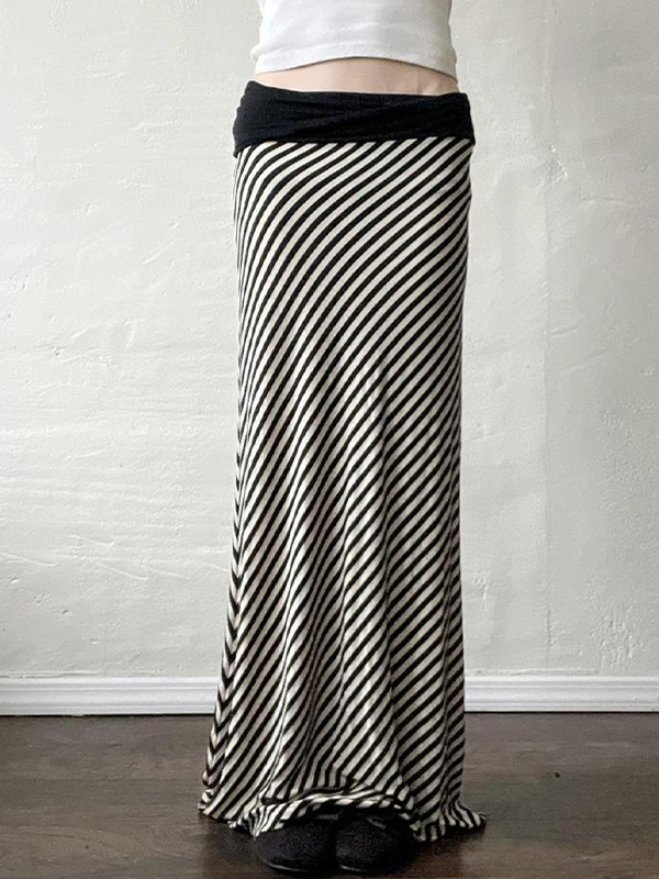 Falda larga con rayas blancas y negras en contraste de colores