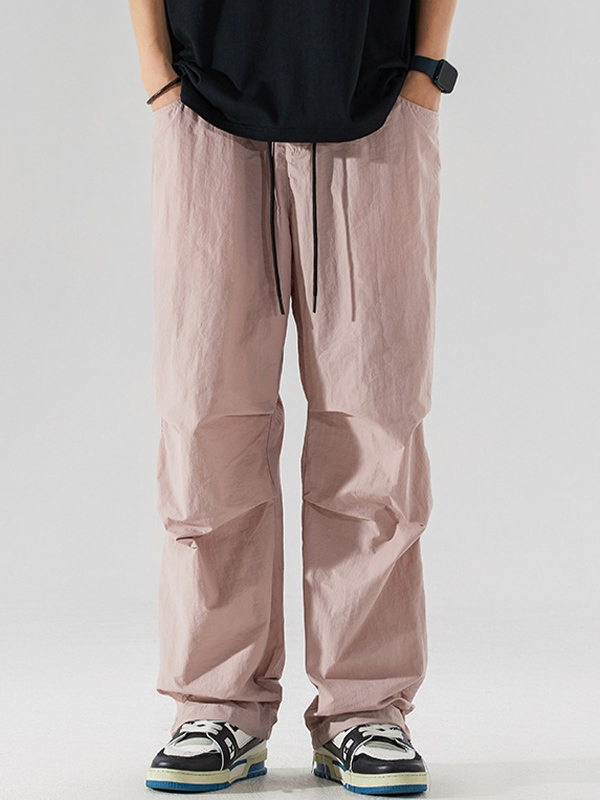 Pantalones de pierna ancha sueltos con cordón plisado para hombre