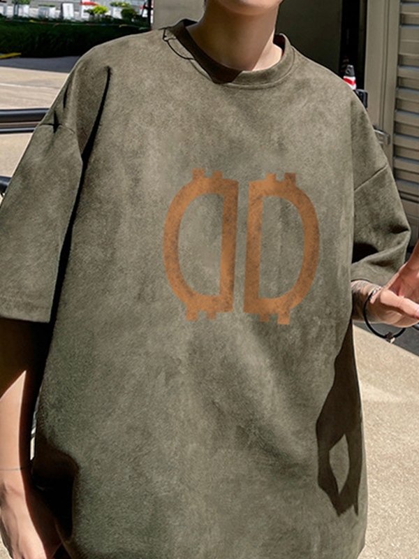 Camiseta extragrande de manga corta de ante con letras para hombre