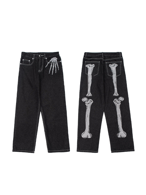 Vaqueros holgados con detalle de puntada y estampado de esqueleto para hombre