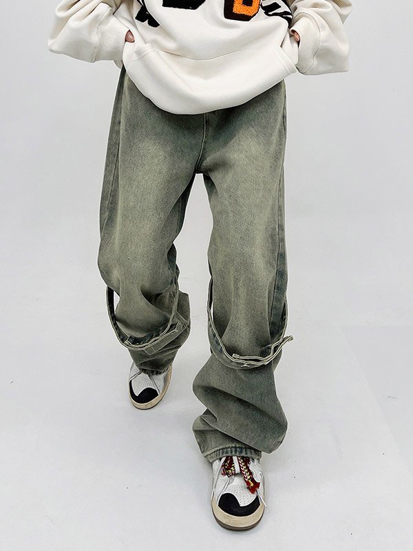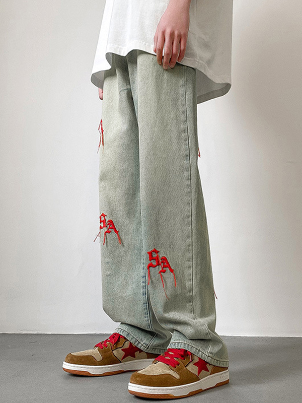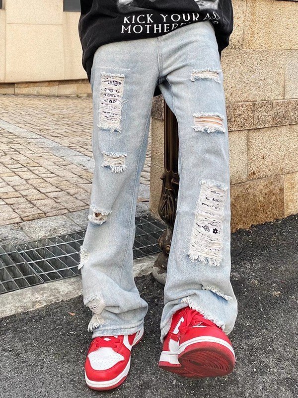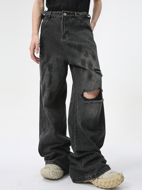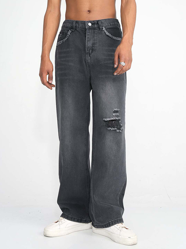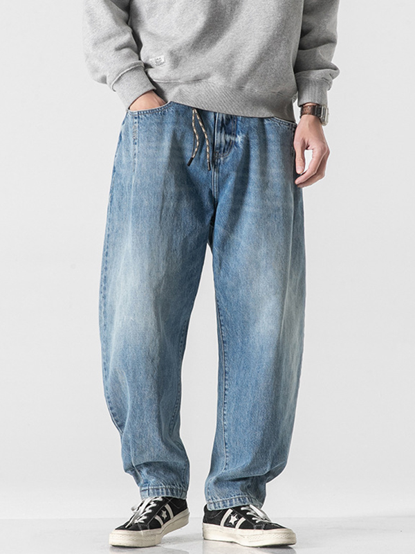 Jeans sueltos de mezclilla desgastada vintage para hombre
