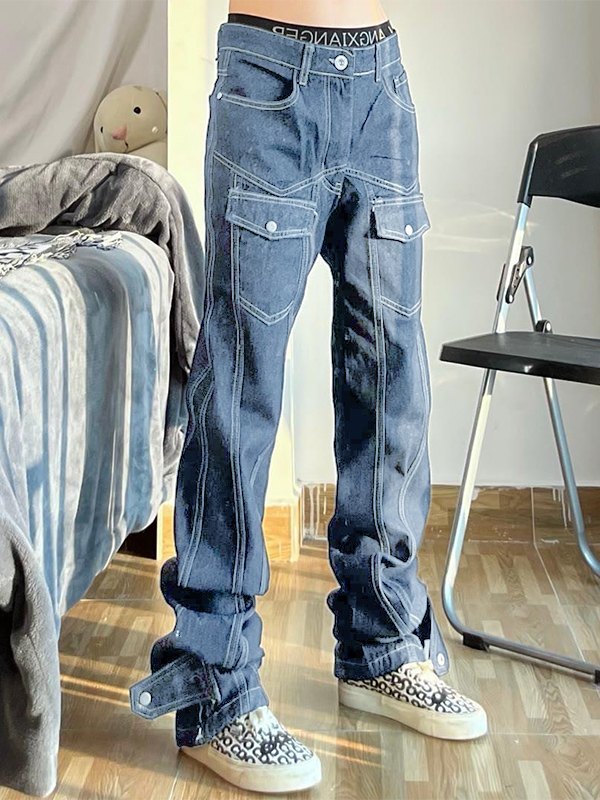 Vaqueros acampanados estilo motociclista de calle americano