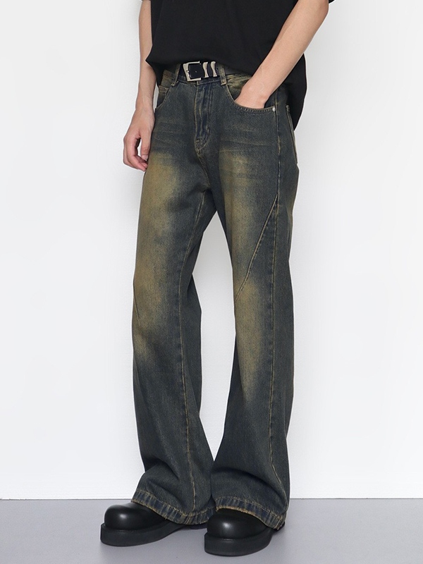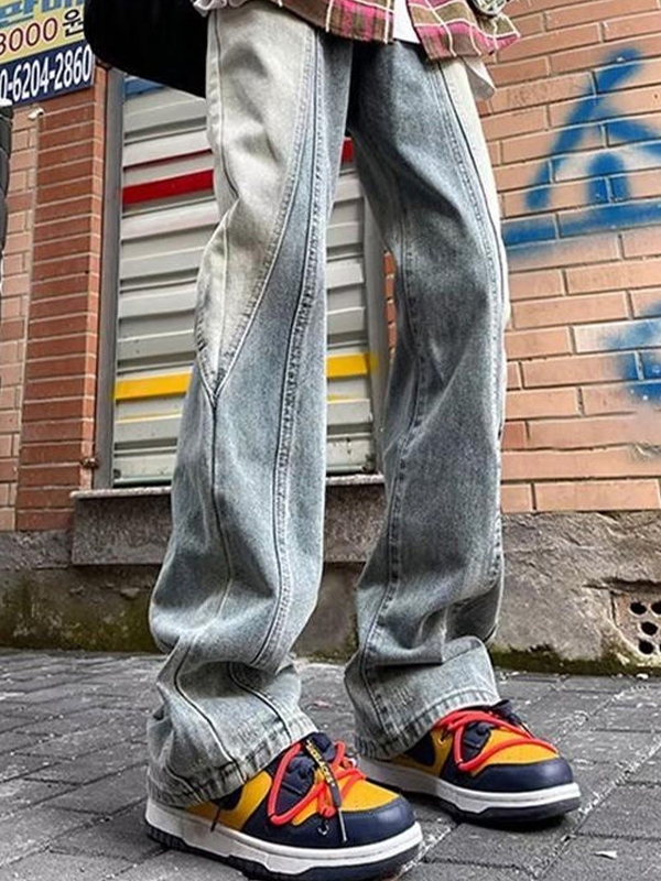 Jeans rectos de mezclilla desgastada con costuras para hombre