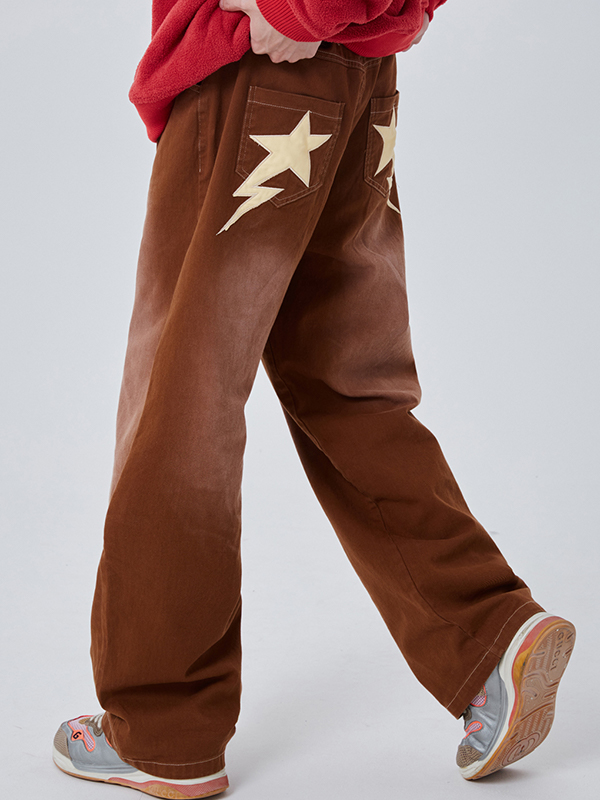 Jeans sueltos de hombre de mezclilla marrón desteñido