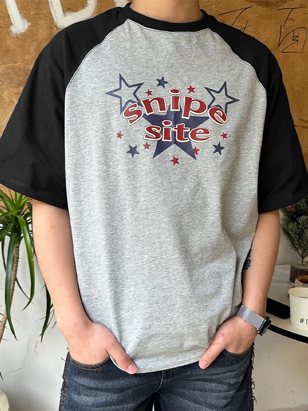Camiseta de manga corta suelta con estampado de estrellas para hombre