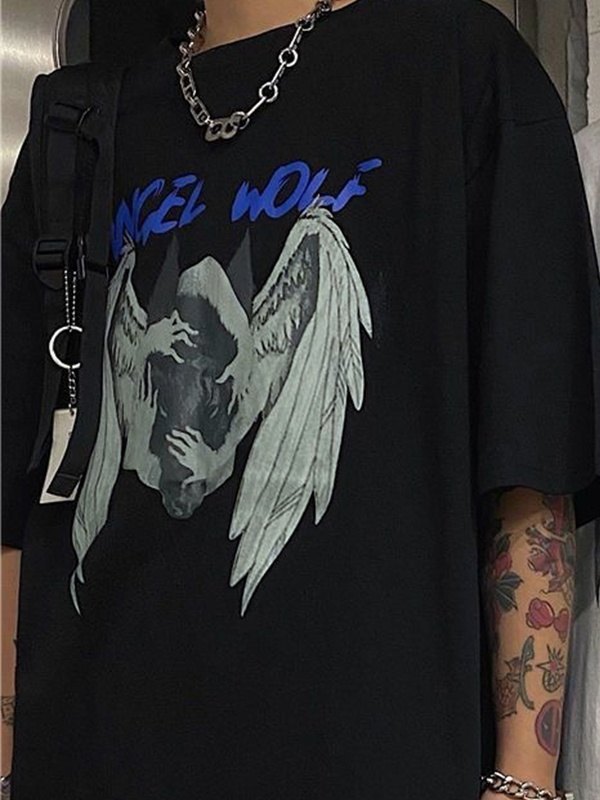 Camiseta estampada de manga corta Angel Wolf para hombre