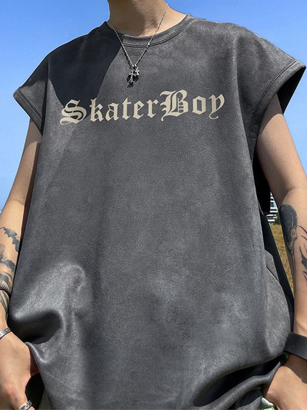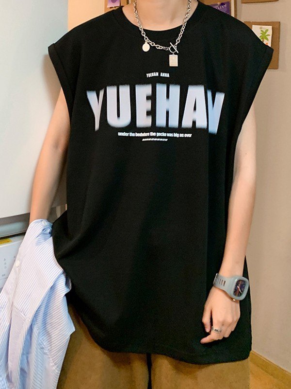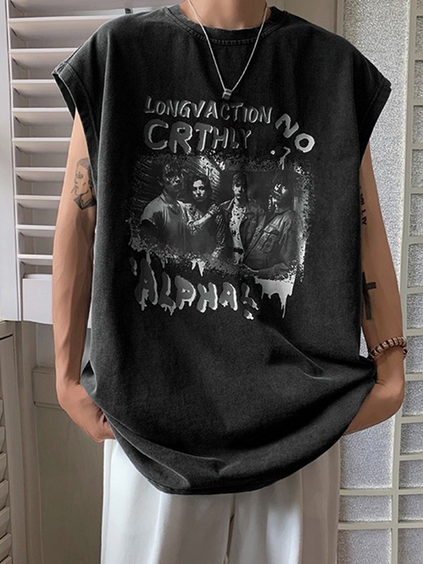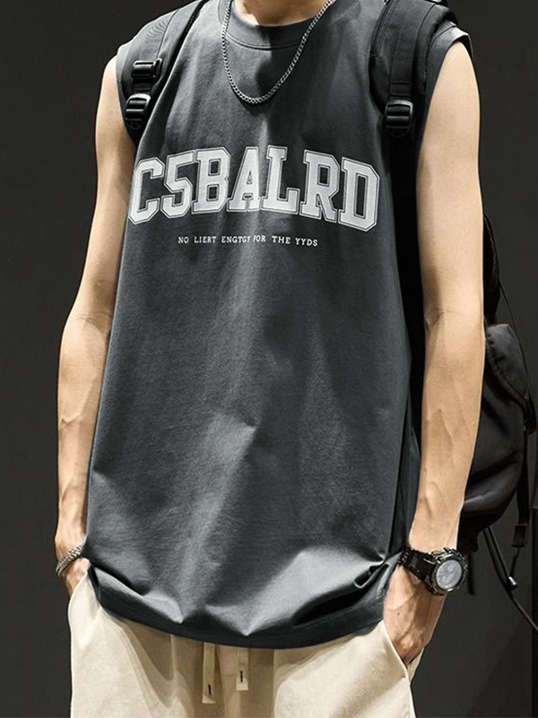 Chaleco casual suelto con estampado de letras para hombre