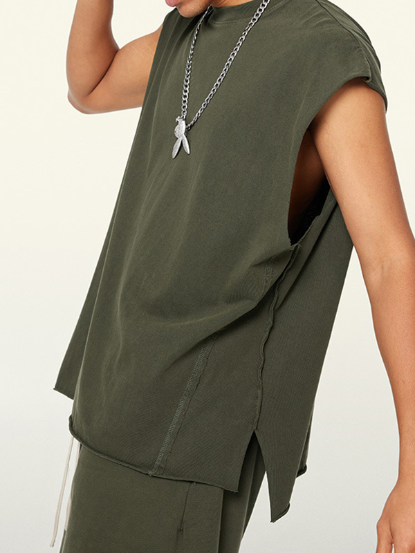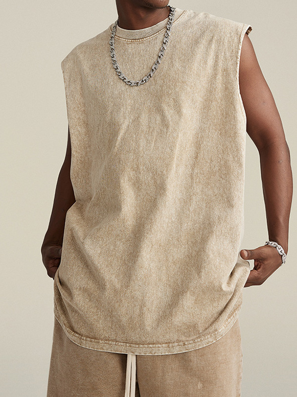 Chaleco con abertura desgastada y lavada vintage para hombre