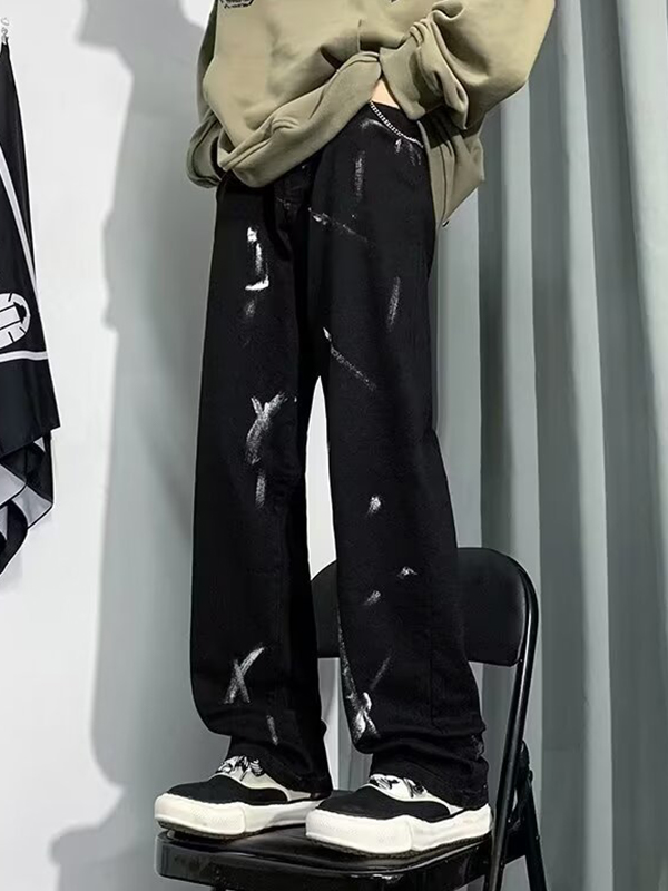 Vaqueros boyfriend con salpicaduras de tinta negra antiguos