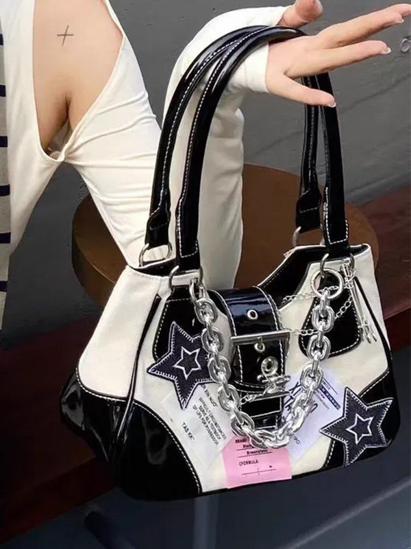 Bolso de hombro de patchwork de estrellas bordado