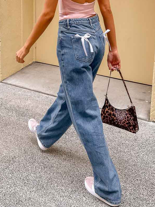 Vaqueros boyfriend rectos con lazo informal